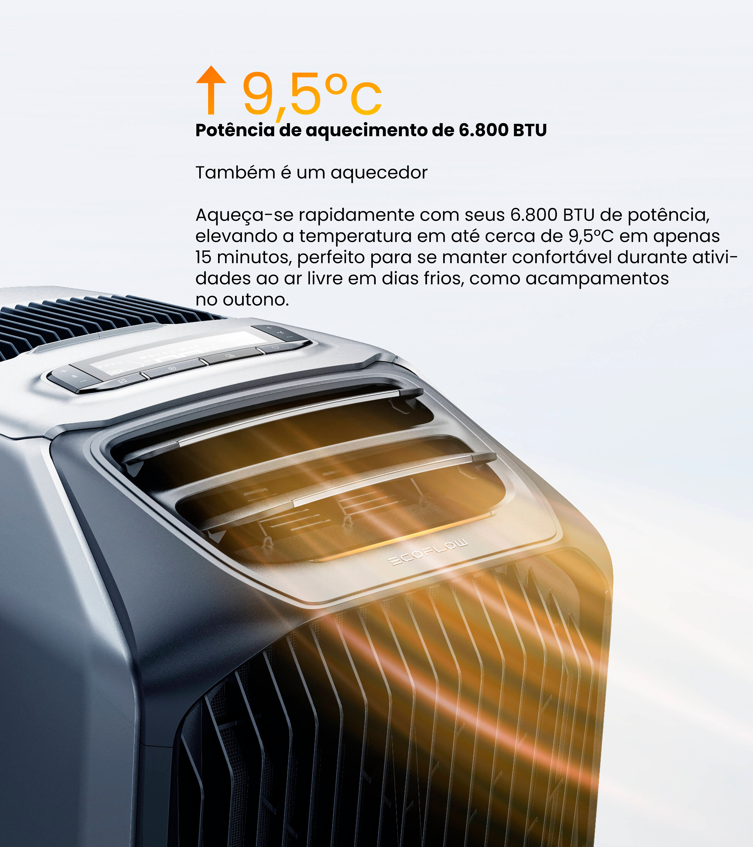 Aquecimento de 6800 BTU (~ 2000W), para aquecer ambientes frios com agilidade.